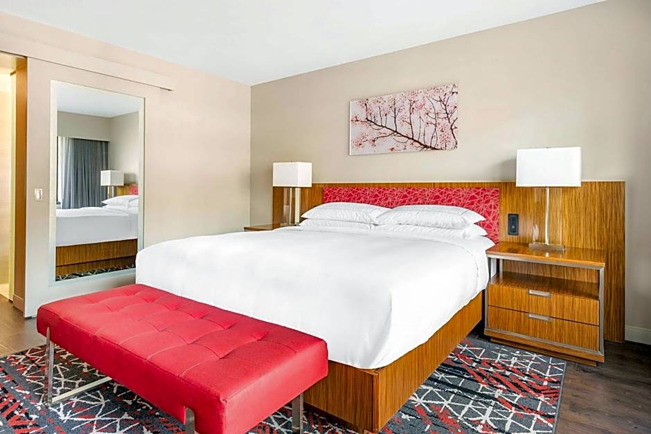 This air-conditioned suite with 1 king bed also has a sofa bed in the living area. A kitchenette with microwave and small refrigerator and a 55" flat-screen TV with cable channels are provided.